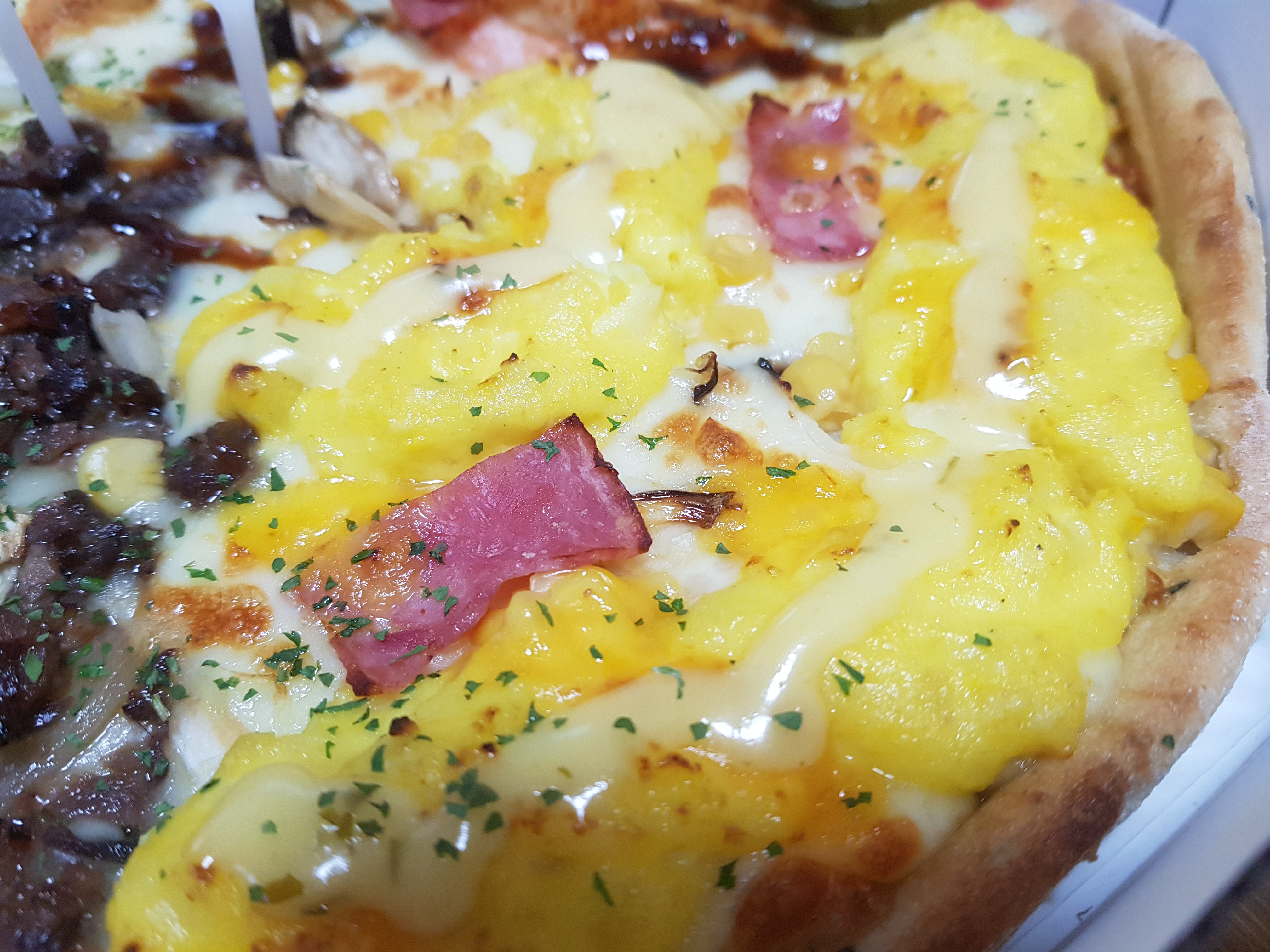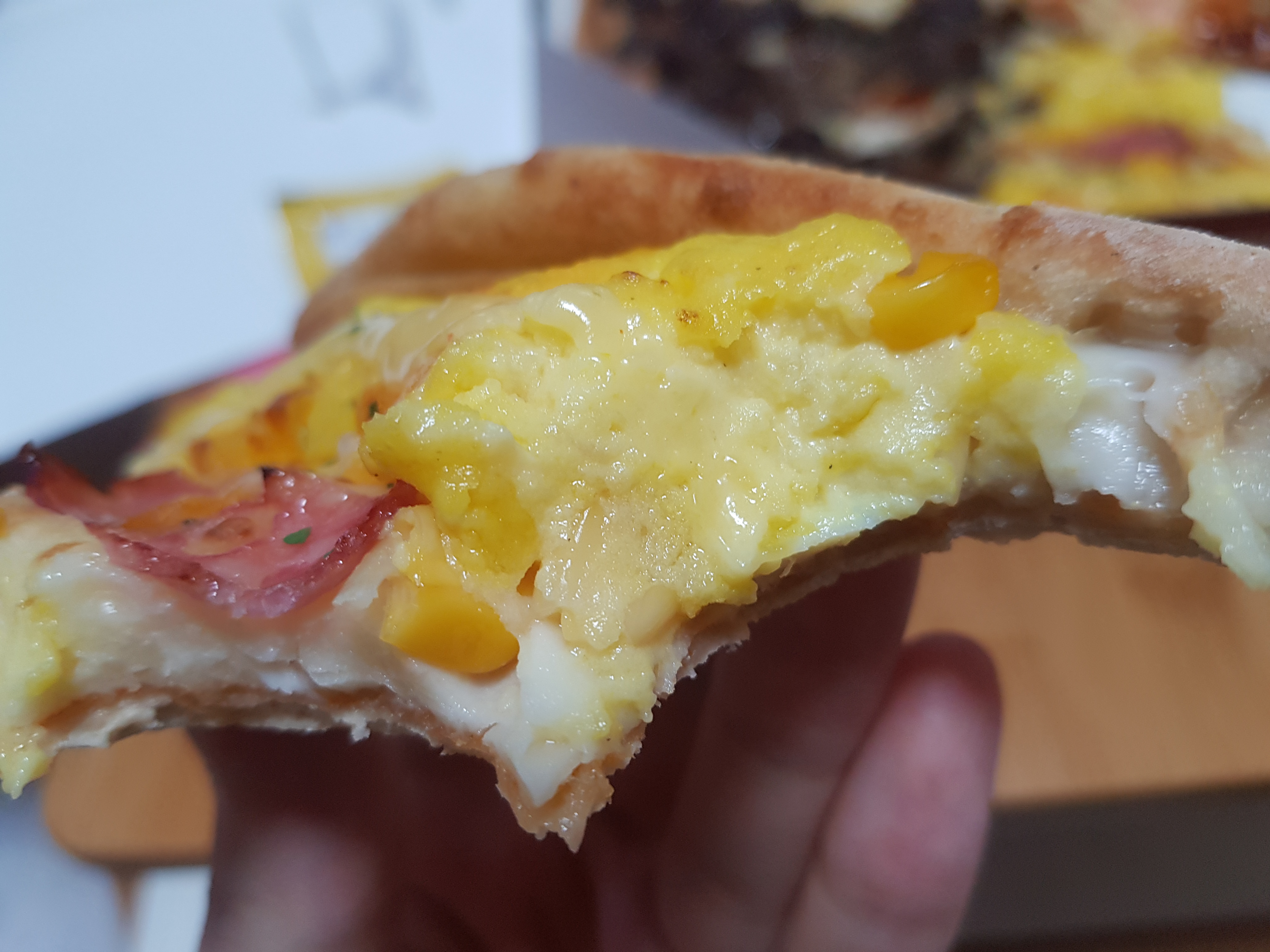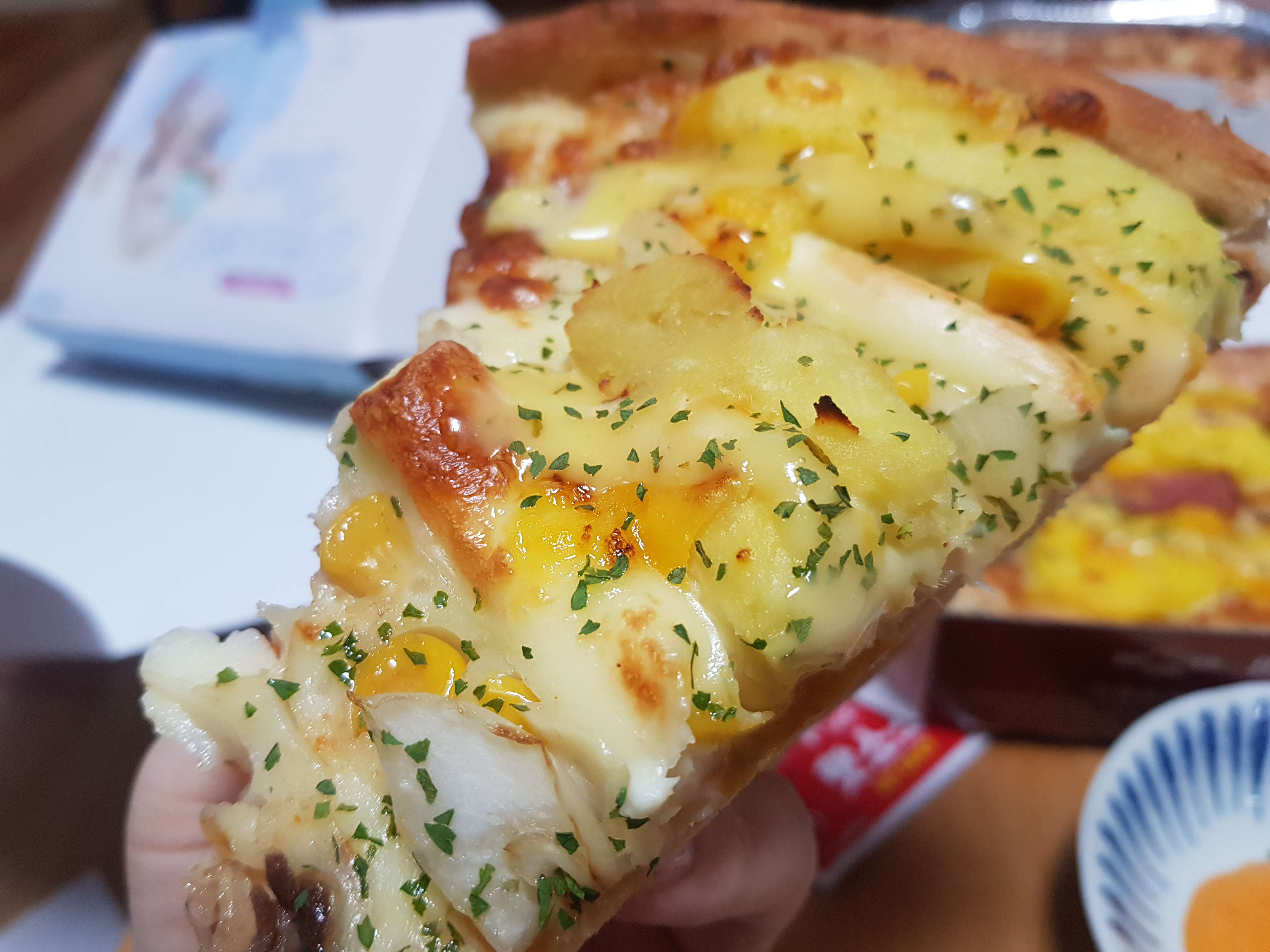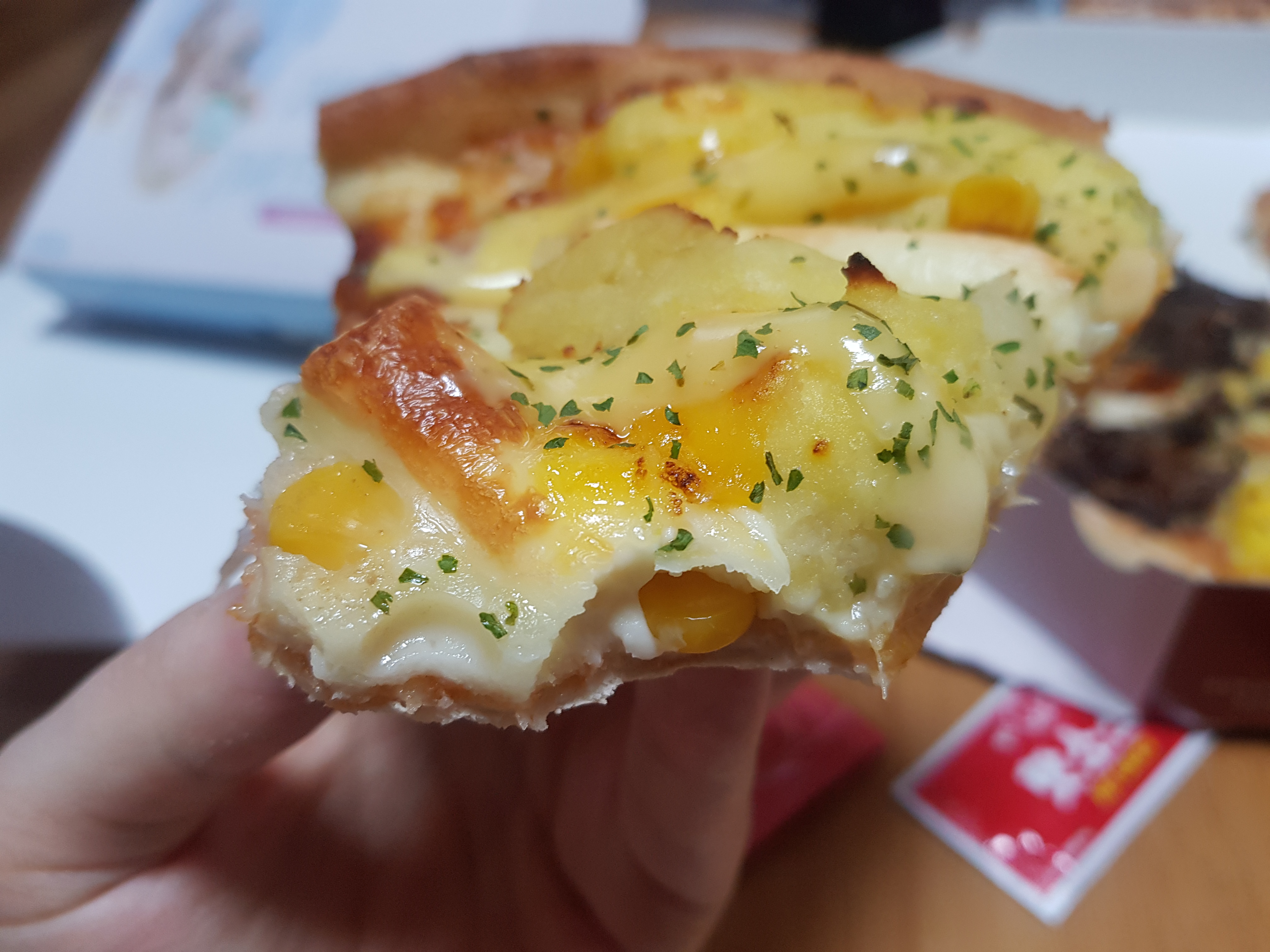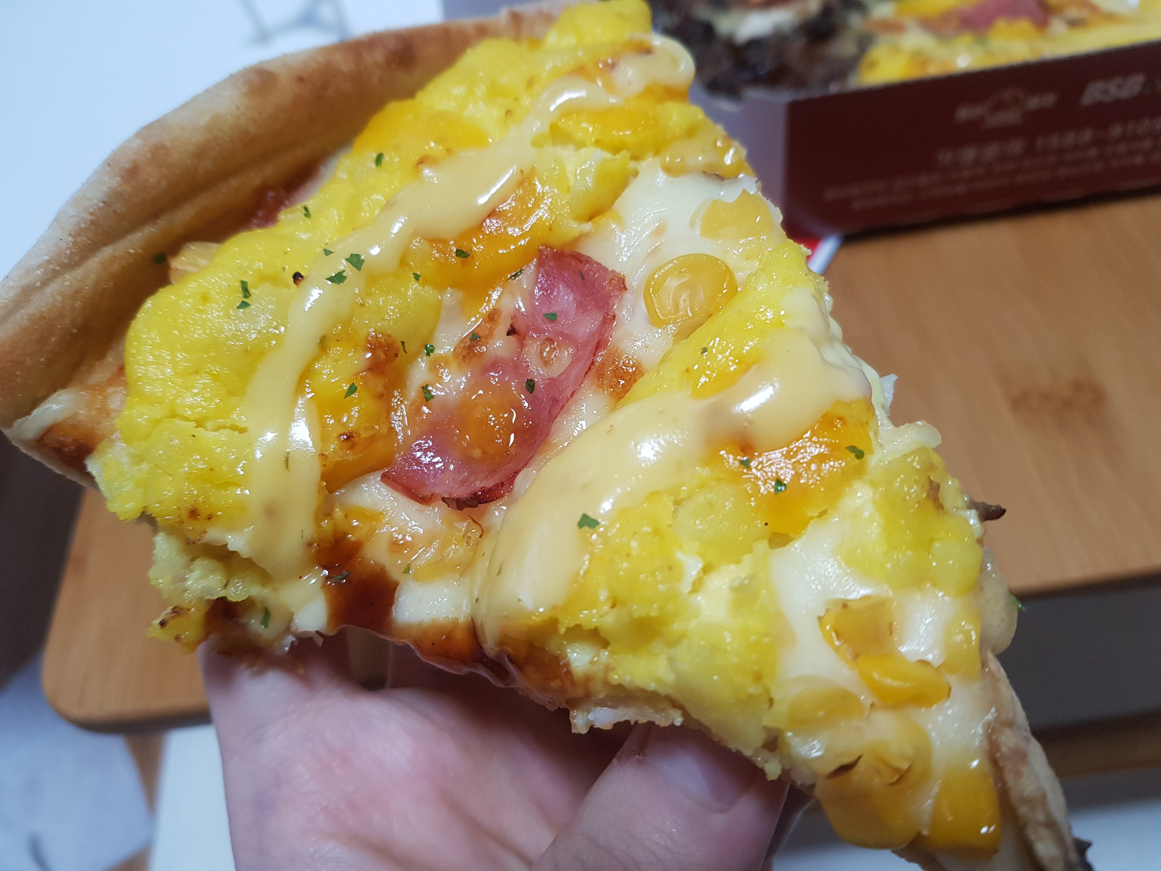 나는 개인적으로 에그콘피자가 가장 맛있었다. 구황작물 피자를 사랑하는 사람으로서,, 알볼로단호박피자를 정말 좋아하는데 청년피자 에그콘피자도 최애로 등극할 것 같다. 감자와 계란이 같이 섞여있어 더 부드럽고 고소한 느낌이 구황작물만 있을 때와는 또 다른 느낌이어서 또 먹고 싶다는 생각이 들었다!