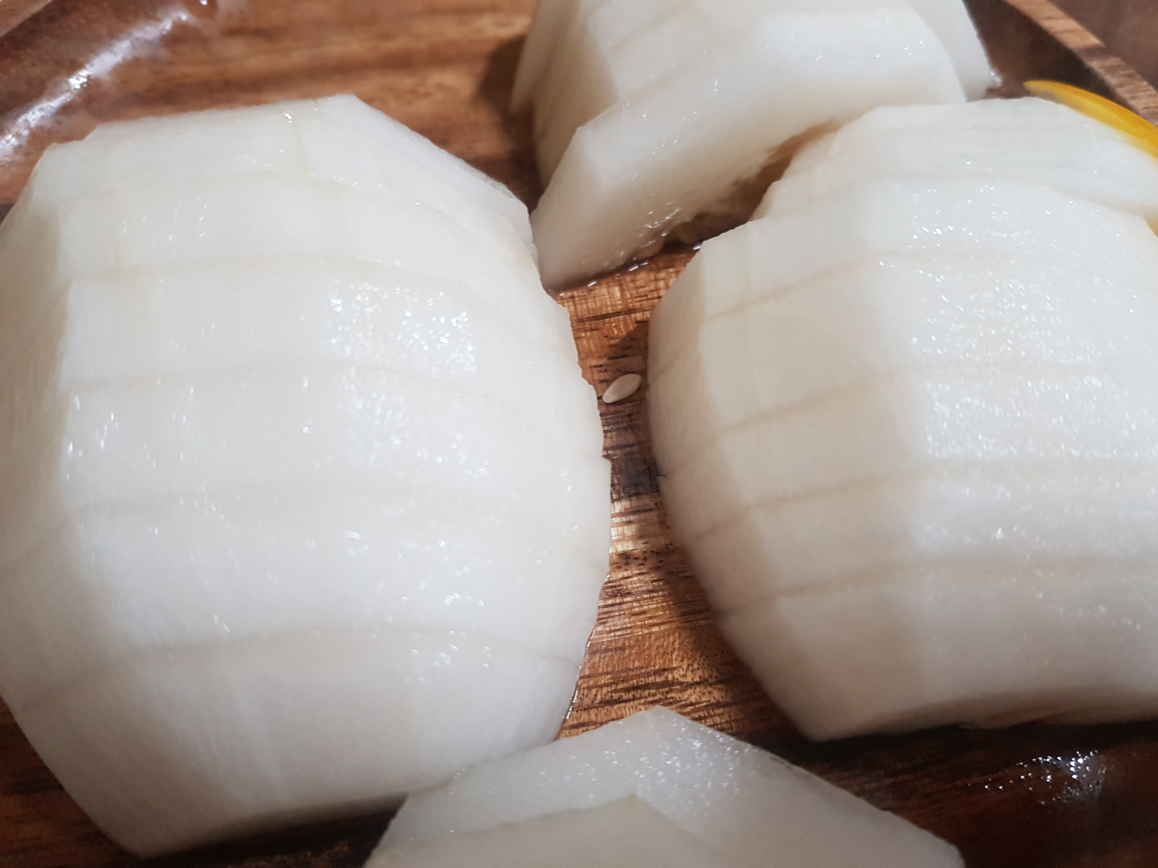 속이 꽉 차 있고 흰 부분이 통통하다.
