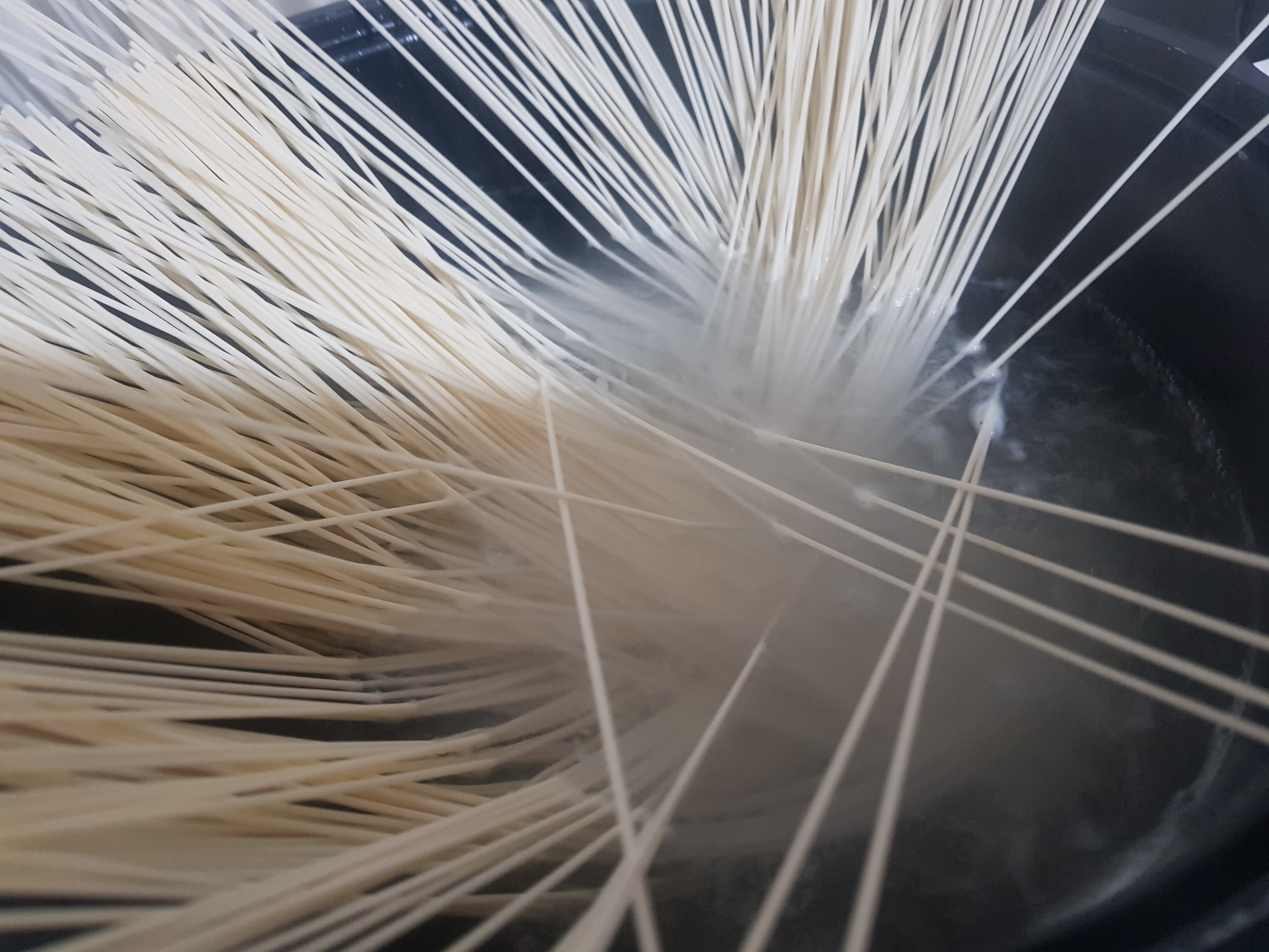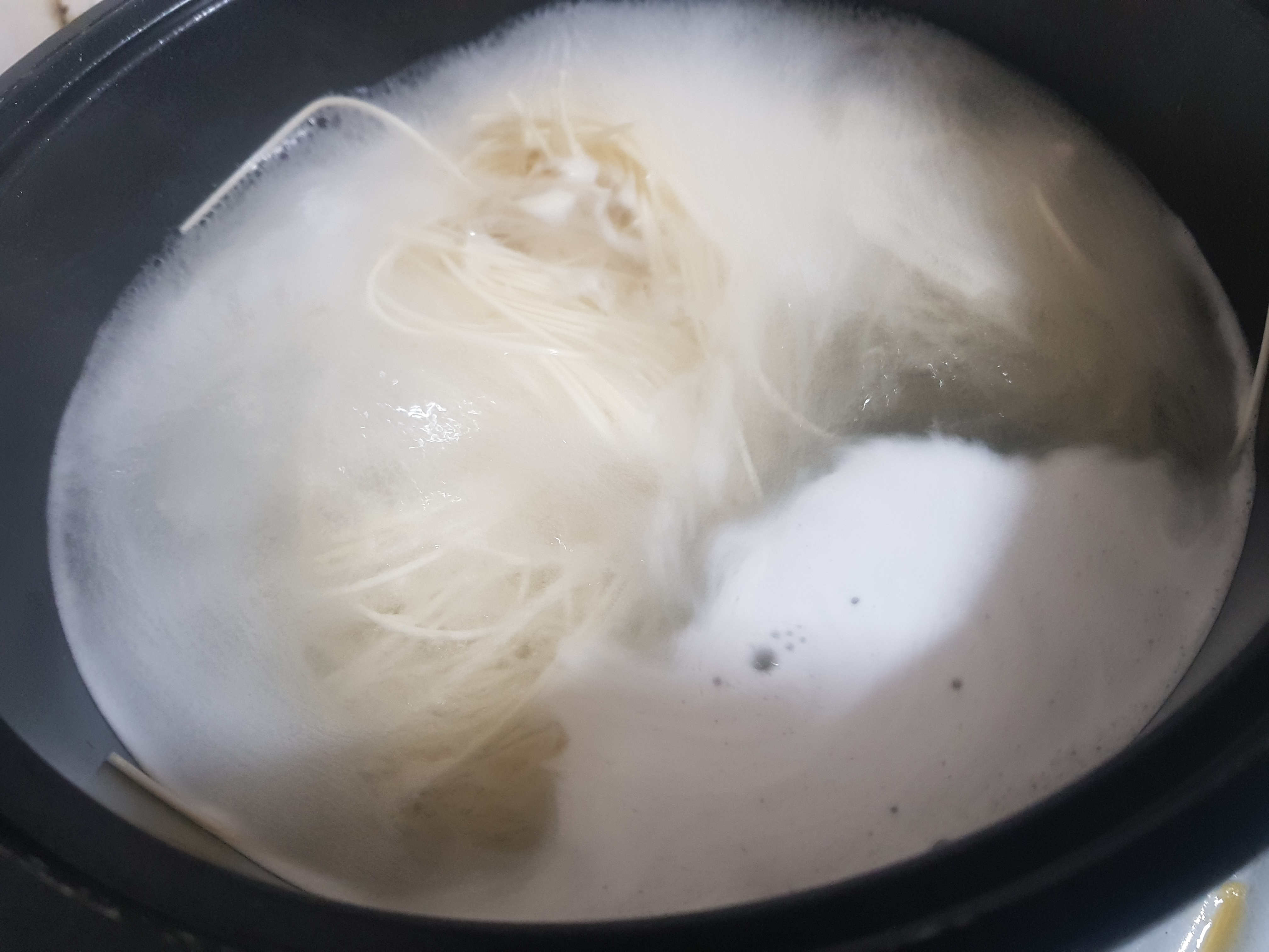 끓는 물에 넣고 눌어붙지 않게 휘휘